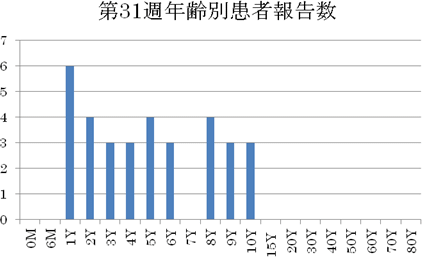 2012年第31週の和歌山市5類感染症(定点把握)の発生状況です。
