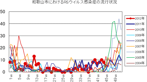 RSウイルス感染症の報告数は、例年冬期にピークが見られ、夏期は報告数が少ない状態が継続していたが、全国的に、2011年、2012年と2年連続して7月頃から増加傾向がみられています。
