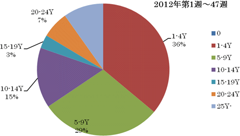 2012年1週〜47週の累積報告者数は、2歳以下で全報告数の90%以上を占めています。