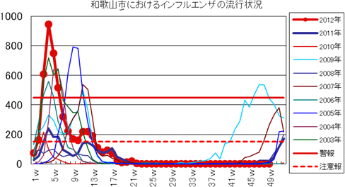 2012年第49週までの和歌山市の発生状況の概要です。