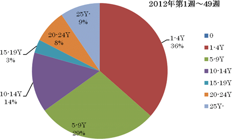 2012年1週〜49週の累積報告者数は、2歳以下で全報告数の90%以上を占めています。
