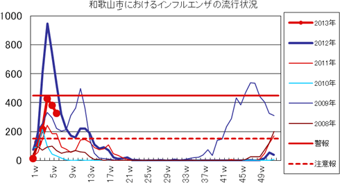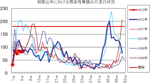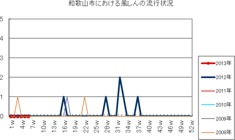 2013年第1〜6週までの和歌山市の発生状況の概要です。