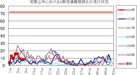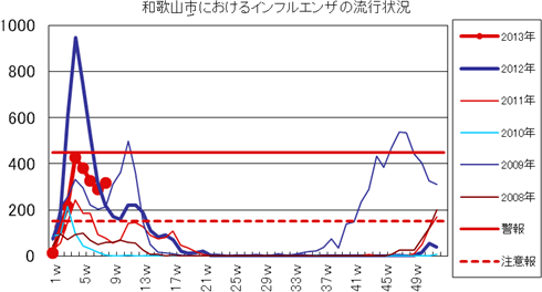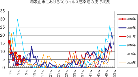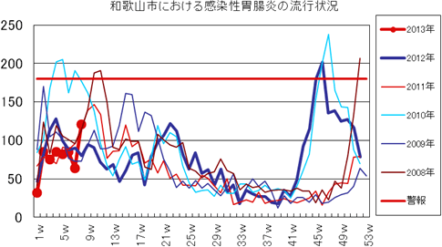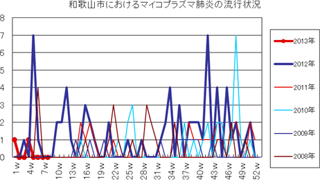 2013年第1〜8週までの和歌山市の発生状況の概要です。