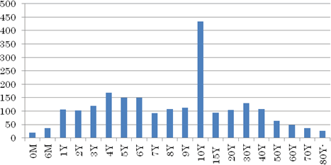 | 0歳 | 1歳 | 5歳 | 10歳 | 15歳 | 20歳 | 25歳 | 30歳 | 35歳 | 40歳 | 計 | |