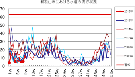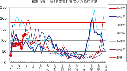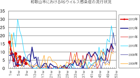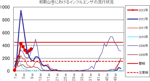 2013年第1〜9週までの和歌山市の発生状況の概要です。