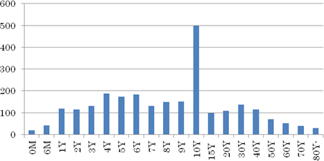 | 0歳 | 1歳 | 5歳 | 10歳 | 15歳 | 20歳 | 25歳 | 30歳 | 35歳 | 40歳 | 計 | |