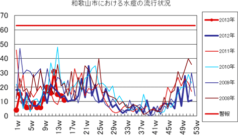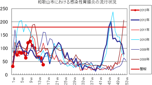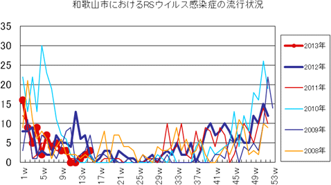 2013年第1〜15週までの和歌山市の発生状況の概要です。
