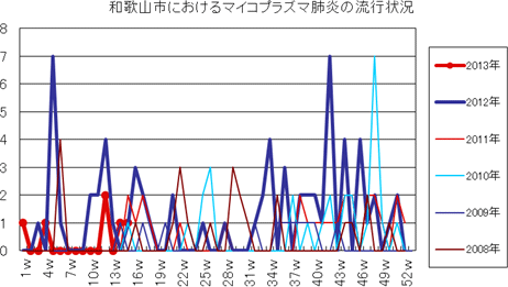 2010年、2011年、2012年は報告なく、2013年も第13週現在まで、和歌山市内で麻しんの報告はありません。