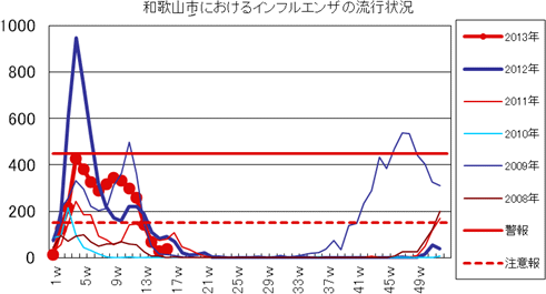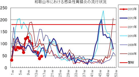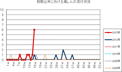2013年第1〜16週までの和歌山市の発生状況の概要です。