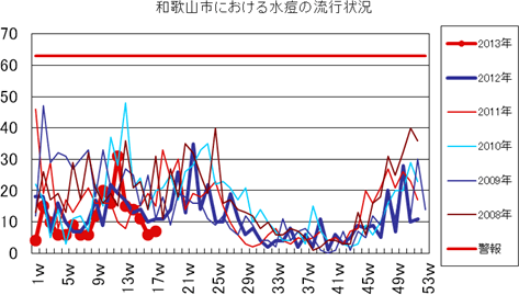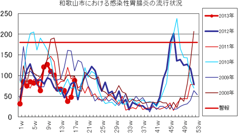 2013年第1〜17週までの和歌山市の発生状況の概要です。