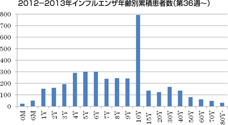 2012−2013年の累積報告者数は、2歳以下で全報告数の90%以上を占めています。