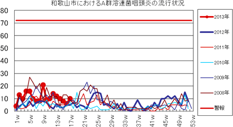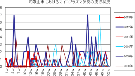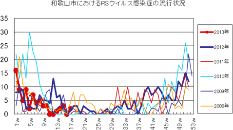 2013年第1〜16週までの和歌山市の発生状況の概要です。
