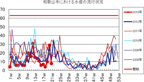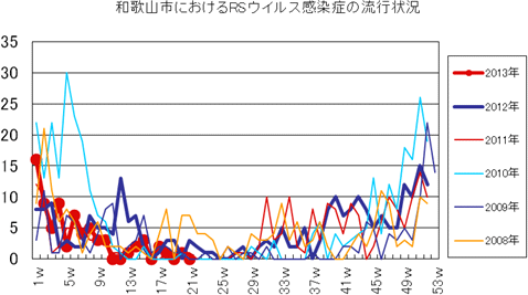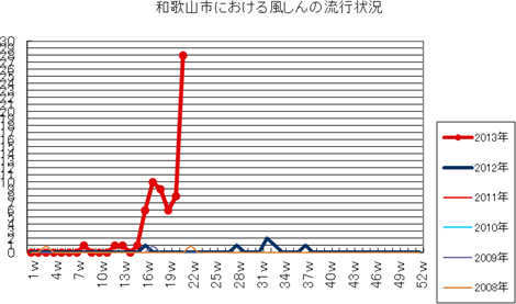 2013年第1〜21週までの和歌山市の発生状況の概要です。