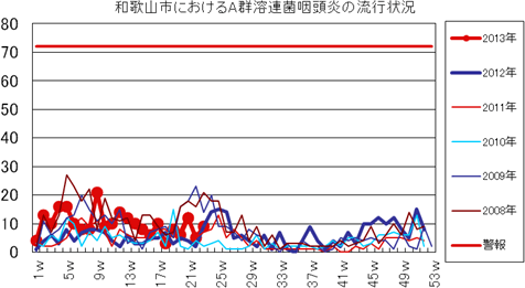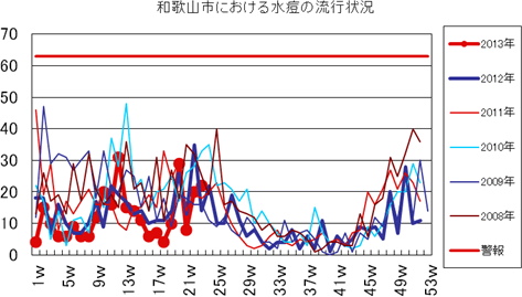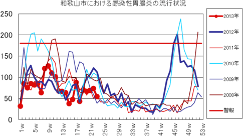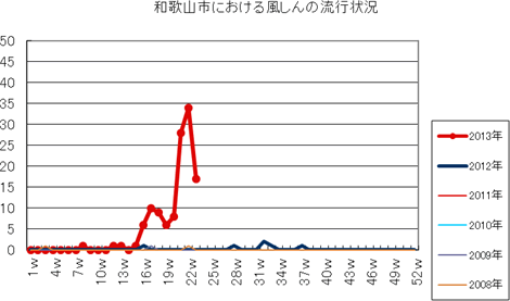2013年第1〜23週までの和歌山市の発生状況の概要です。