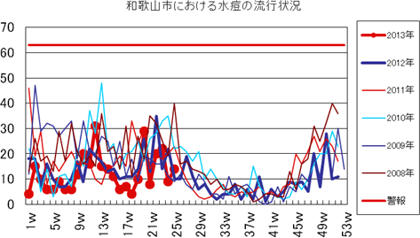 2013年第1〜25週までの和歌山市の発生状況の概要です。