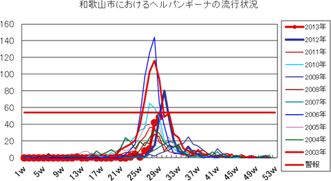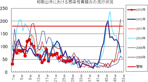 2013年第1〜26週までの和歌山市の発生状況の概要です。