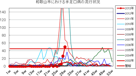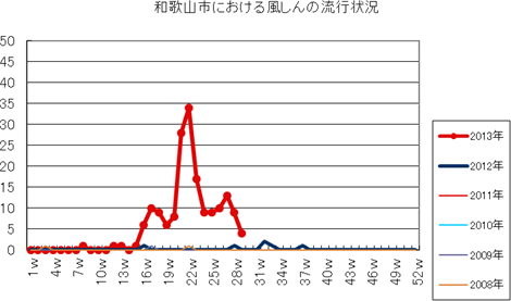 2013年第1〜29週までの和歌山市の発生状況の概要です。