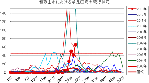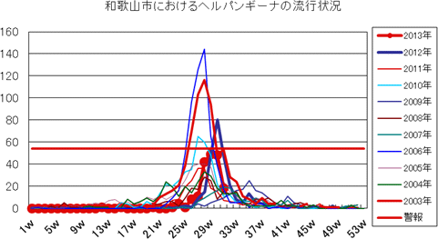 2013年第1〜31週までの和歌山市の発生状況の概要です。