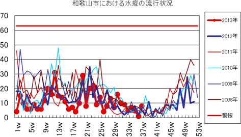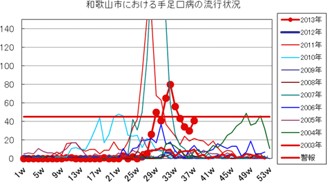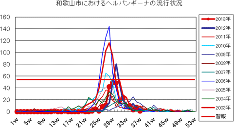 2013年第1〜37週までの和歌山市の発生状況の概要です。