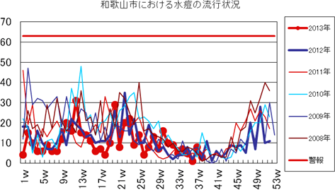 2013年第1〜38週までの和歌山市の発生状況の概要です。