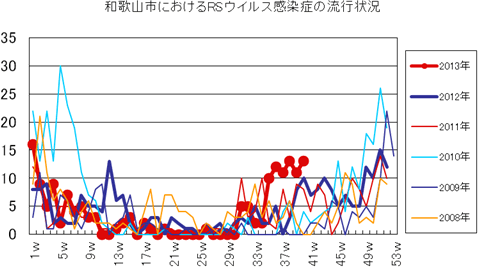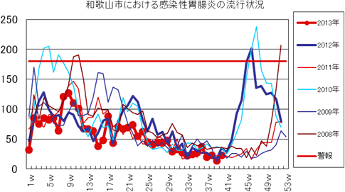 2013年第1〜40週までの和歌山市の発生状況の概要です。