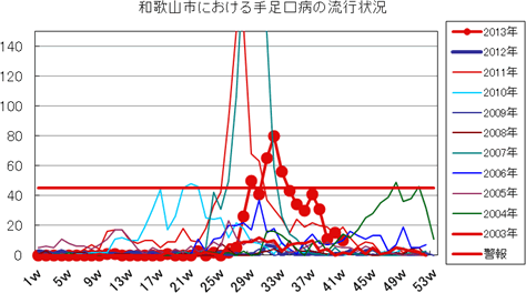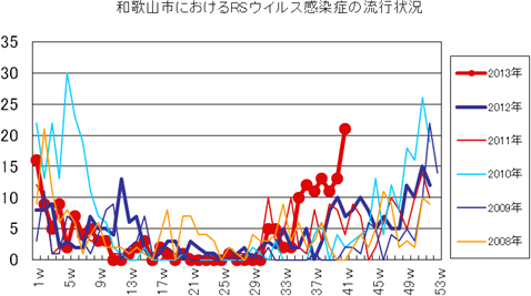 2013年第1〜41週までの和歌山市の発生状況の概要です。