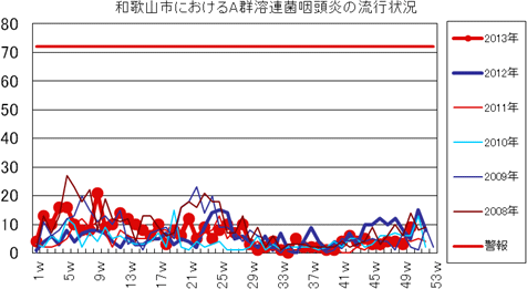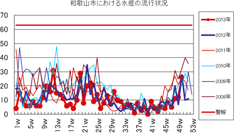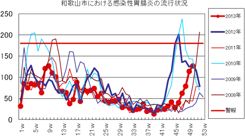 2013年第1〜50週までの和歌山市の発生状況の概要です。