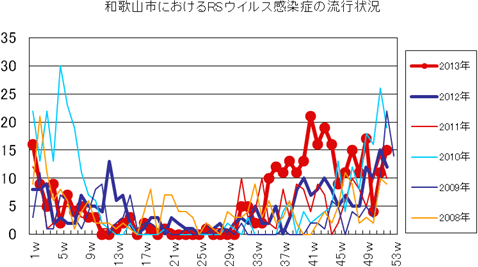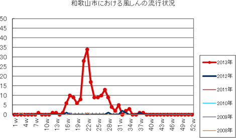 2013年第1〜52週までの和歌山市の発生状況の概要です。