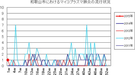 2014年第45週1件、第46週2件、第47週1件、第48週4件、第49週12件、第50週16件、第51週13件、第52週5件で、2015年今週は1件(定点あたり0.11)と前週より減少しました。