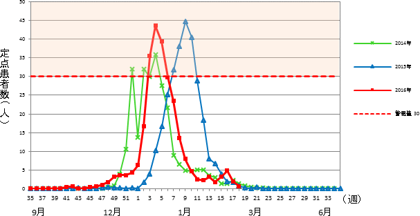インフルエンザ゙定点 市内 15医療機関(小児科9&内科6)