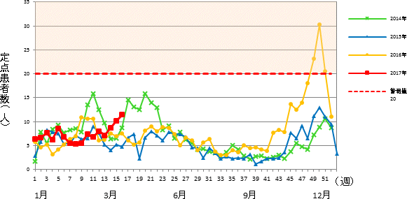 インフルエンザ゙定点 市内 15医療機関(小児科9&内科6)