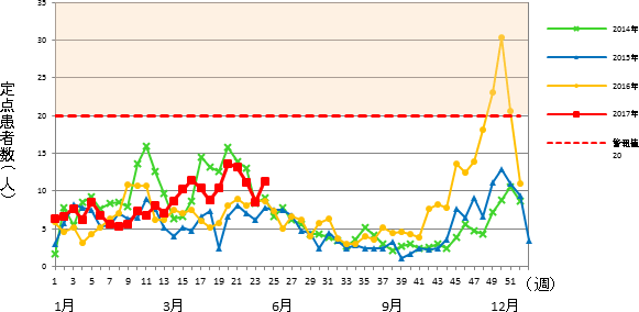 平成29年 第24週 / 5類感染症 定点医療機関週報報告の対象疾患の報告数の推移