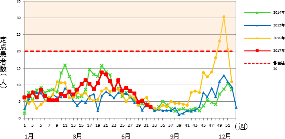 インフルエンザ゙定点 市内 15医療機関(小児科9&内科6)