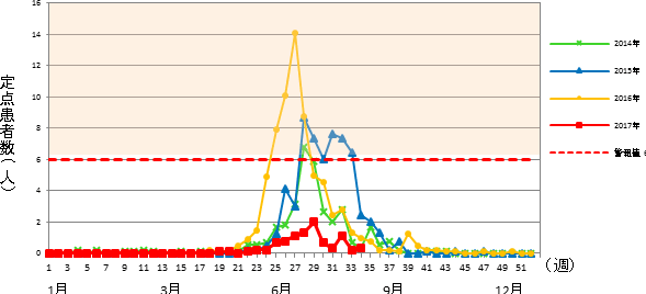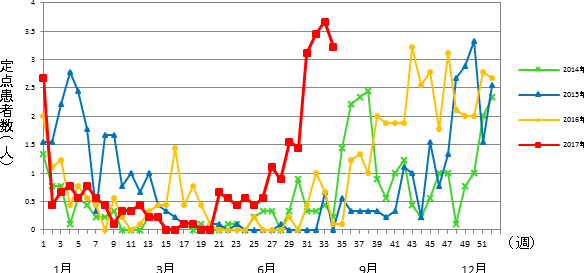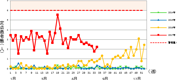 平成29年 第34週 / 5類感染症 定点医療機関週報報告の対象疾患の報告数の推移