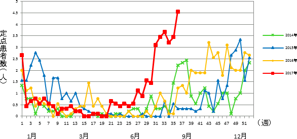 平成29年 第36週 / 5類感染症 定点医療機関週報報告の対象疾患の報告数の推移