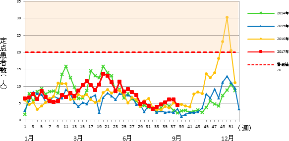 インフルエンザ゙定点 市内 15医療機関(小児科9&内科6)