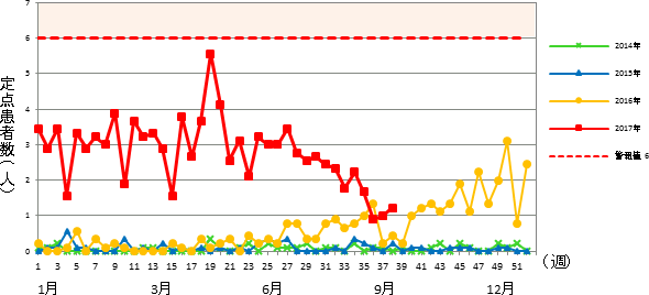 平成29年 第38週 / 5類感染症 定点医療機関週報報告の対象疾患の報告数の推移