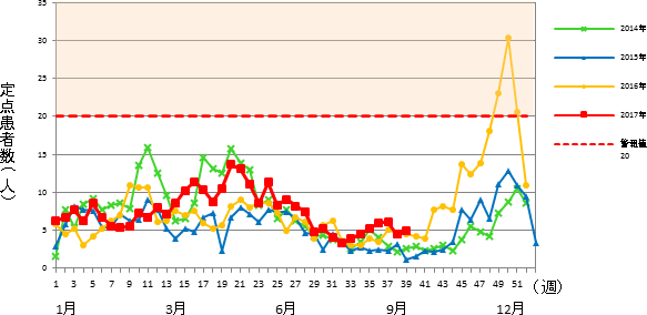 インフルエンザ゙定点 市内 15医療機関(小児科9&内科6)
