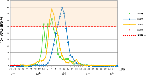 インフルエンザ゙定点 市内 15医療機関(小児科9&内科6)