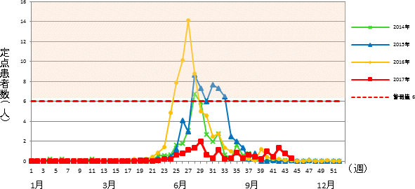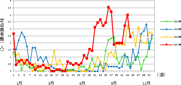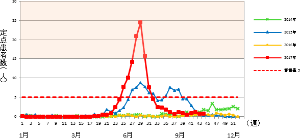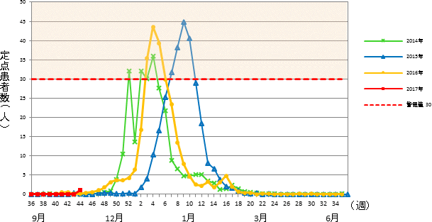 平成29年 第44週 / 5類感染症 定点医療機関週報報告の対象疾患の報告数の推移
