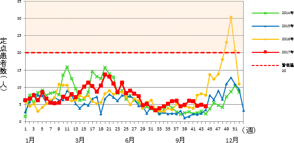 インフルエンザ゙定点 市内 15医療機関(小児科9&内科6)