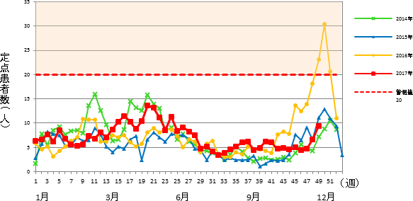 平成29年 第49週 / 5類感染症 定点医療機関週報報告の対象疾患の報告数の推移