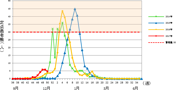 インフルエンザ゙定点 市内 15医療機関(小児科9&内科6)