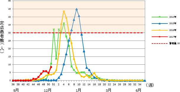 インフルエンザ゙定点 市内 15医療機関(小児科9&内科6)