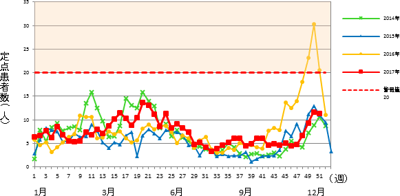 平成29年 第51週 / 5類感染症 定点医療機関週報報告の対象疾患の報告数の推移