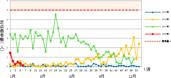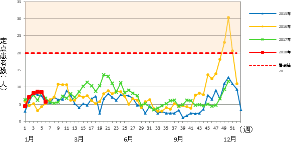 平成30年 第6週 / 5類感染症 定点医療機関週報報告の対象疾患の報告数の推移