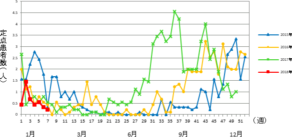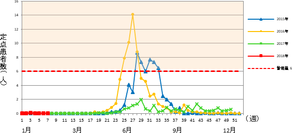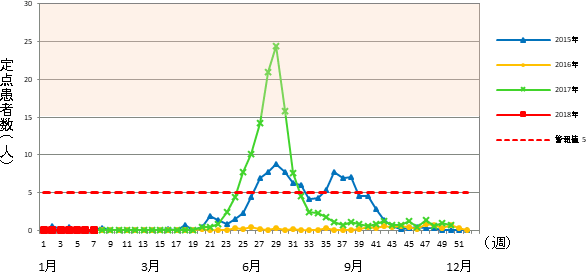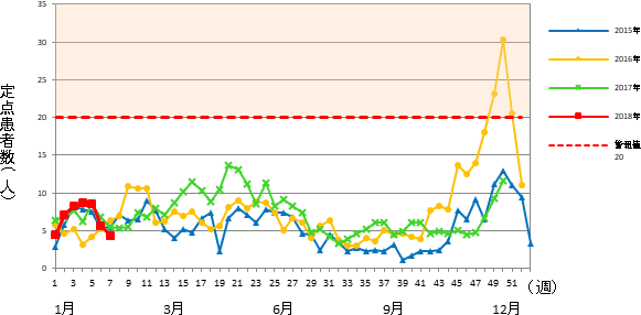 平成30年 第7週 / 5類感染症 定点医療機関週報報告の対象疾患の報告数の推移