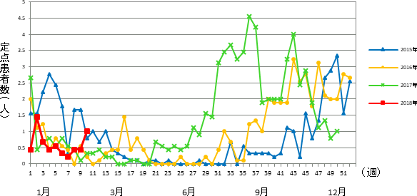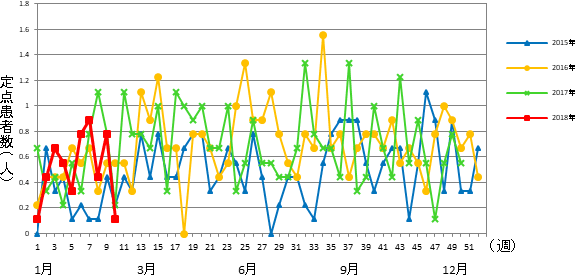 平成30年 第10週 / 5類感染症 定点医療機関週報報告の対象疾患の報告数の推移