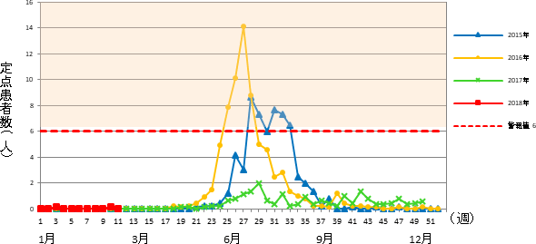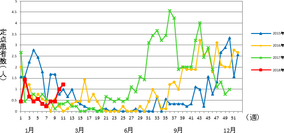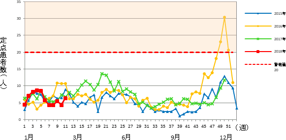 平成30年 第11週 / 5類感染症 定点医療機関週報報告の対象疾患の報告数の推移