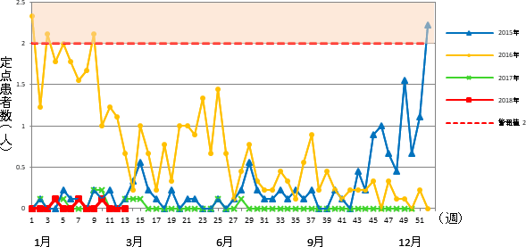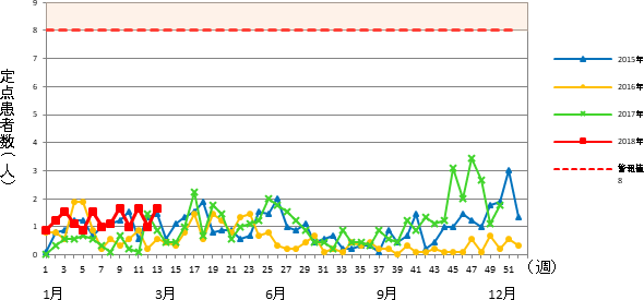 平成30年 第13週 / 5類感染症 定点医療機関週報報告の対象疾患の報告数の推移
